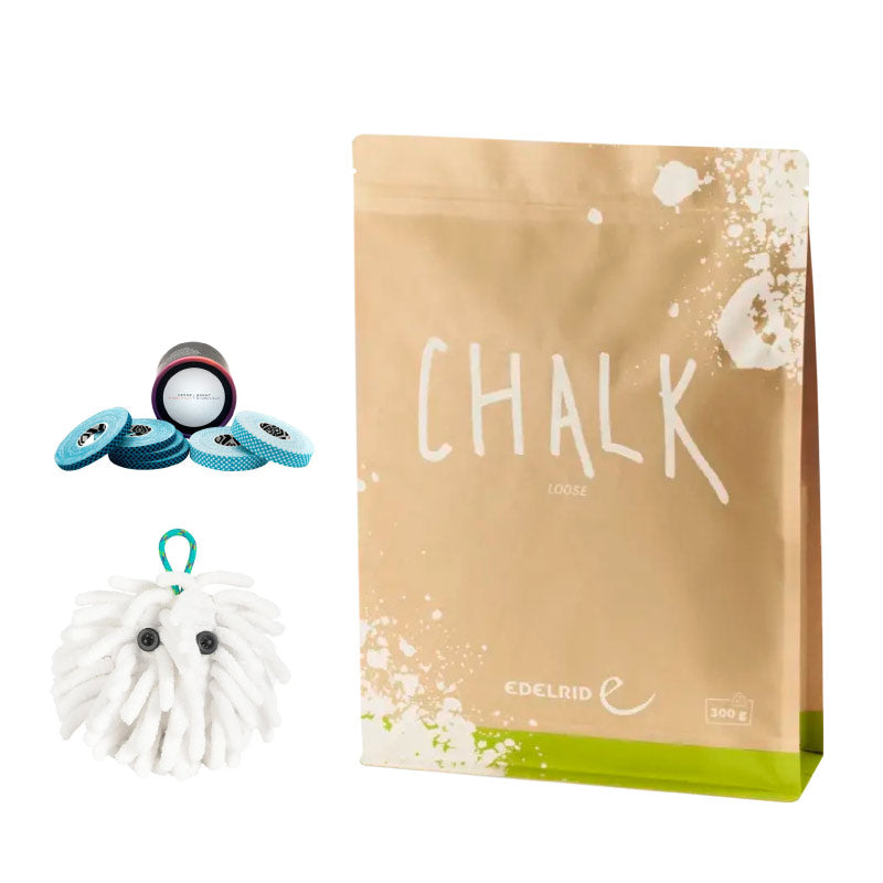 This bundle covers the basics every climber needs: quality loose chalk for dependable friction, the Chalktopus for easy access, and Crux Tape for quick finger and skin support. It’s an ideal grab-and-go set for training sessions, gym days or trips to the crag.