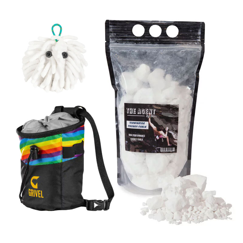 This bundle delivers reliable grip and smooth chalking during gym or crag sessions. The Grivel Chalk Bag sits comfortably and stays open when you need it, the Chalktopus adds convenience, and Agent Chalk provides top-tier friction.