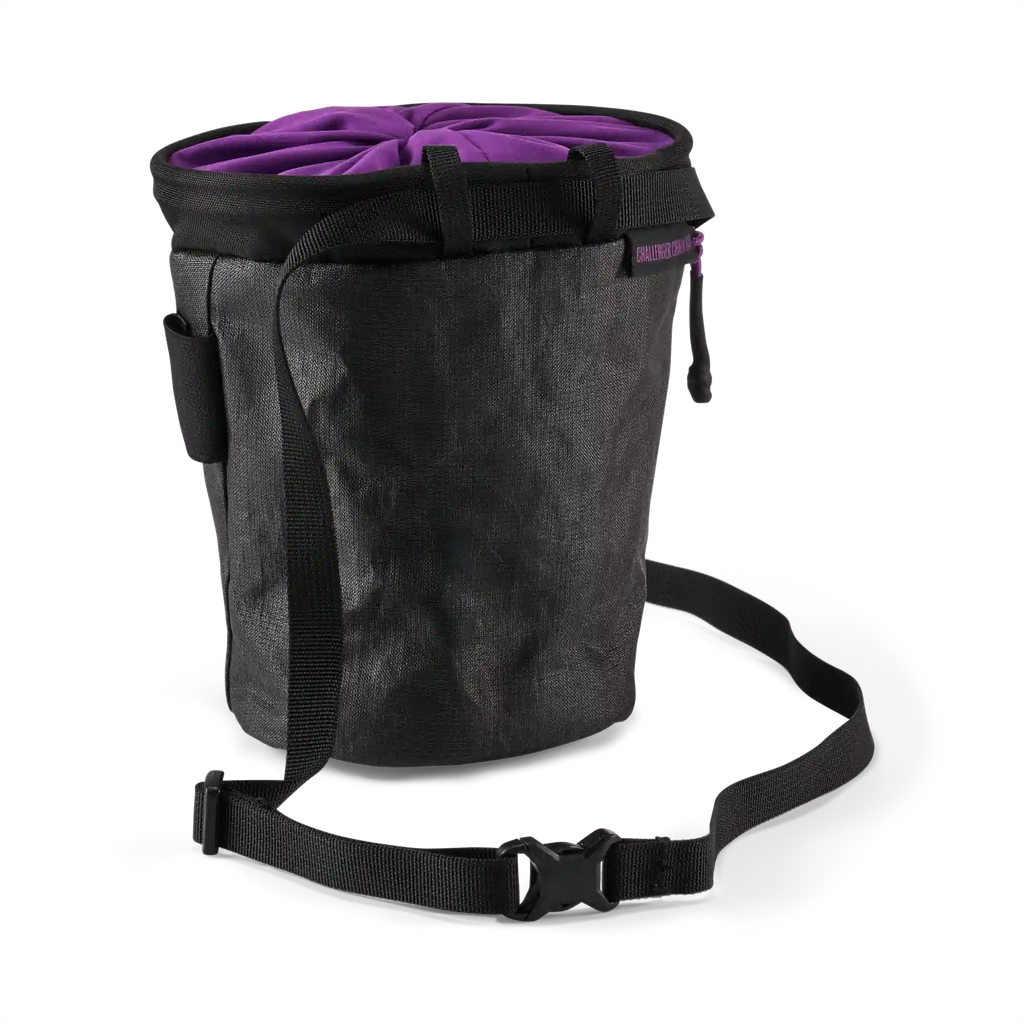 The Challenger chalk bag is made with durable, tear resistant Challenge Sailcloth Ultra 200 to be tough enough for sustained outdoor use but light enough that it will not weigh you down on the wall. This drawstring pouch is anatomically shaped to naturally accommodate your movements as you climb and features a base frame to stay upright on the ground. The bag comes with a detachable belt with quick release buckle, making it easy to take off between attempts. A convenient zippered side pocket lets you keep small items close to hand. And an elastic loop ensures you have a brush on hand any time the holds need a scrub. A hard wearing piece of kit that is equipped for any route, the Challenger Chalk Bag is built to keep up with your climbing sessions for years to come.