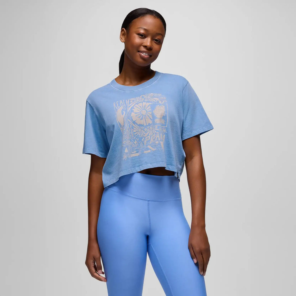 Elevate your basics with this cropped tee featuring a statement graphic and vintage wash that just gets better with time. The Regenerative Organic Certified® Cotton makes it ultra-breathable for hot days and soft enough to earn a spot in your regular rotation. Pair it with high-waisted pants for a look that easily transitions from day to night.
