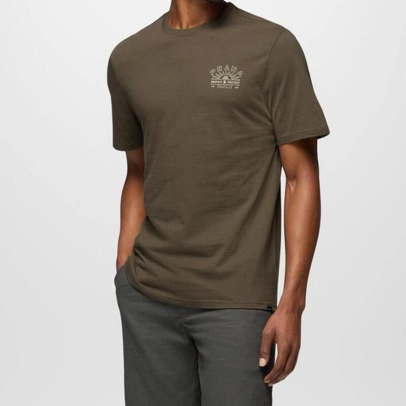Warm days call for this casual short-sleeve crewneck tee constructed from sustainable organic cotton, which promises breathable freshness. A prAna-inspired graphic adds a soothing statement finish. The soft feel makes it a comfortable favorite to pair with shorts for a versatile style that's ready to head to the brewery or hit the trail.