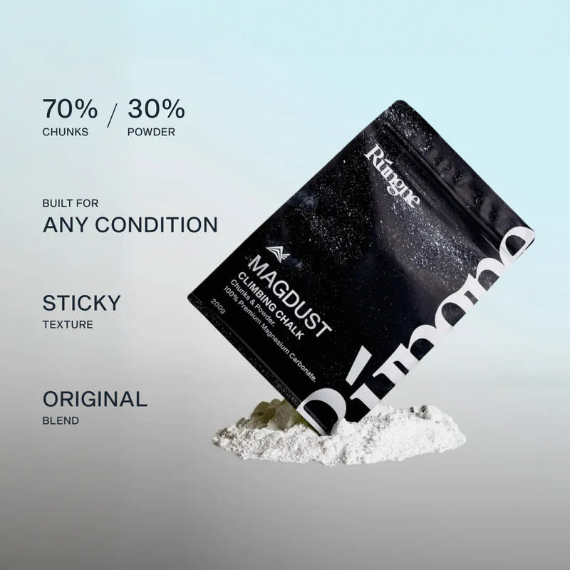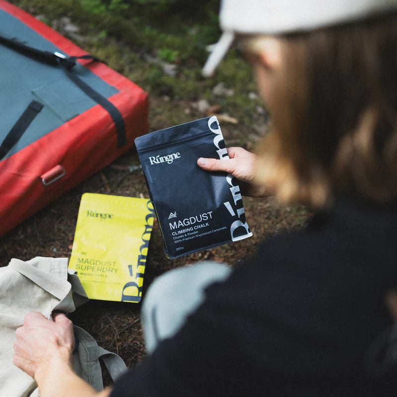 Rúngne Magdust white chunky chalk is specifically made for climbing, helping to keep sweat at bay. No matter how hot or humid it gets, Rúngne Magdust chalk ensures maximum grip and is made from 100% premium magnesium, carefully chosen by Magnus Midtbø. Magdust keeps your hands dry and your grip tight!