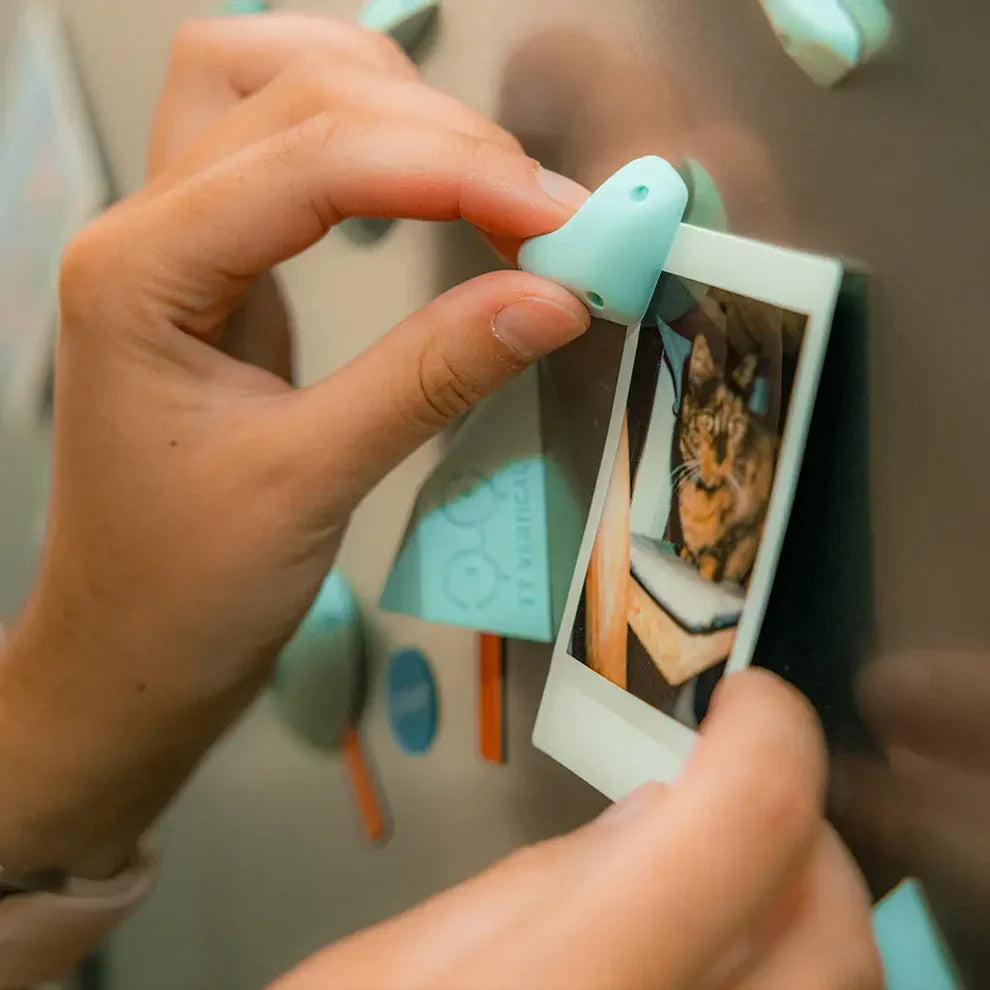 Integrated magnets: reliable hold on most ferromagnetic surfaces (fridge, metal board, locker...).